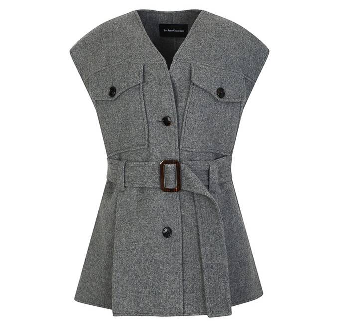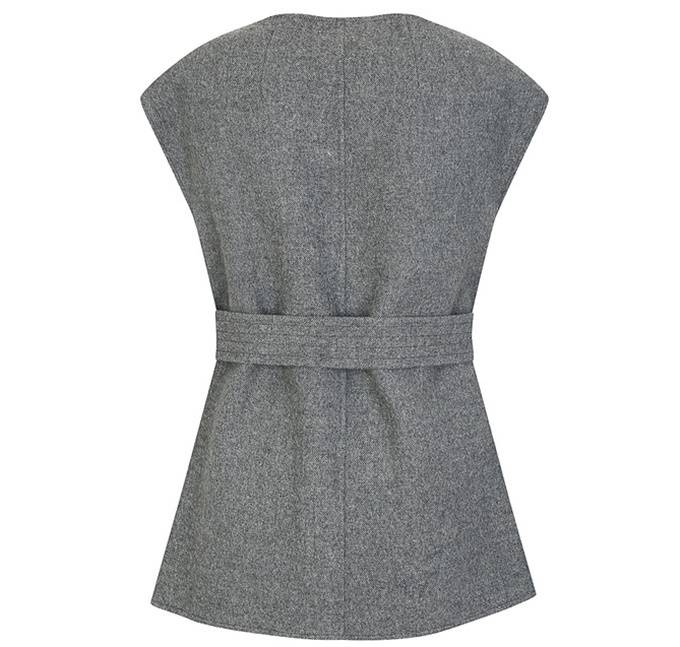 허리 핀턱 주름과 앞판 아웃 포켓, 칼라 없이 깔끔한 브이넥 디자인이 돋보이는 베스트였는데요