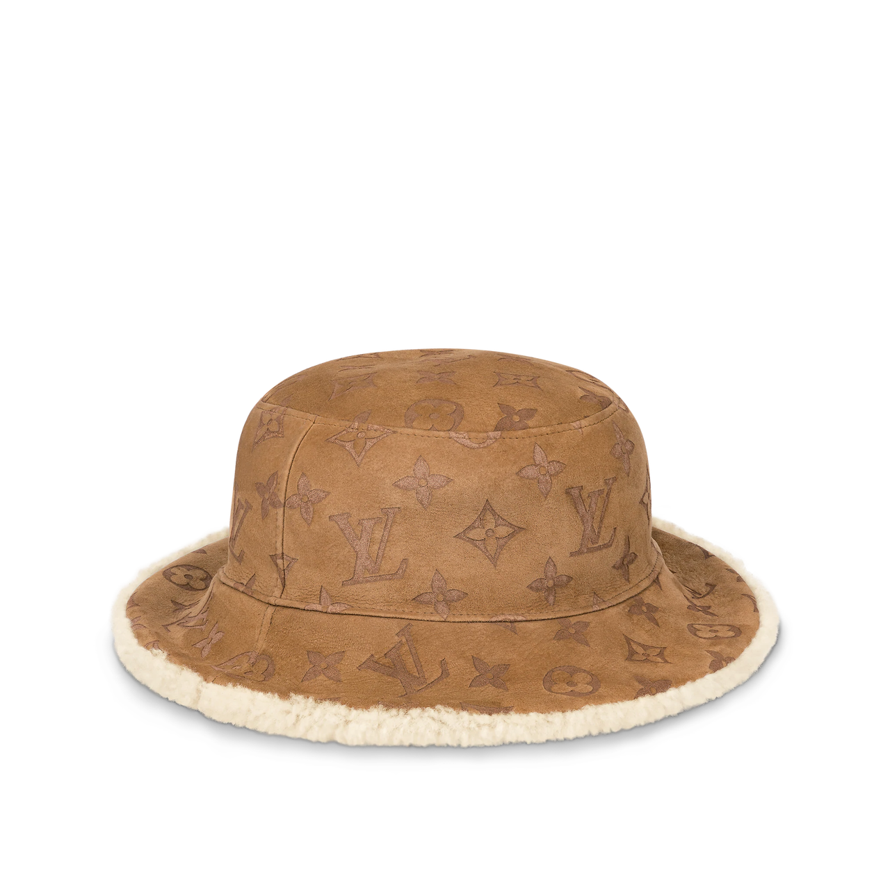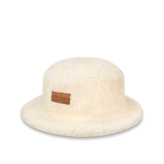 시그니처 레이저 컷 모노그램이 외부에, 양가죽 안감이 내부에 있는 리버 서블 모자!!