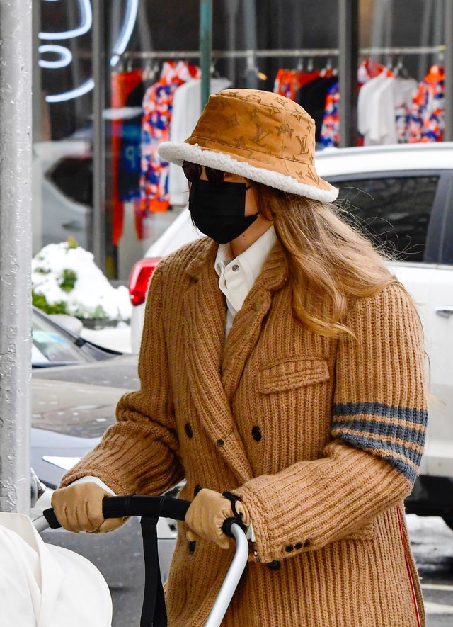 겨울룩에 빠질 수 없는 아이템 중 하나로!! 포근하고 따뜻해 보이는 버킷햇으로 겨울룩을 완벽하게 완성한 지지 하디드이네요