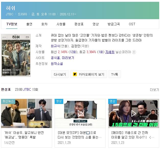 허쉬는 JTBC에서 금요일, 토요일 밤 11시에 하는 주말드라마입니다.