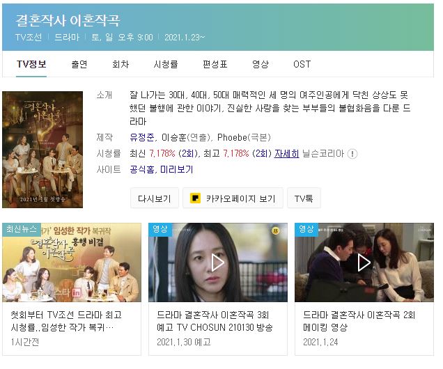 2021/01/25 - [Beautiful Life/Diary] - 주말드라마 결혼작사 이혼작곡 인물관계도 몇부작?