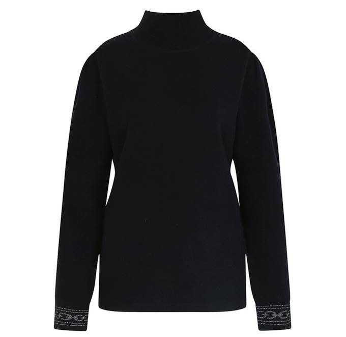 부담 없는 하프넥 디자인이며 소맷단 시보리로 포인트를 주어 다양한 자켓 또는 아우터와 함께 매치하기 좋은