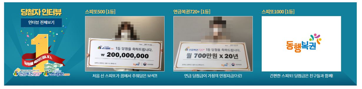 매주 1등 당첨자 인터뷰 역시 홈페이지에서 확인하실 수 있씁니다.