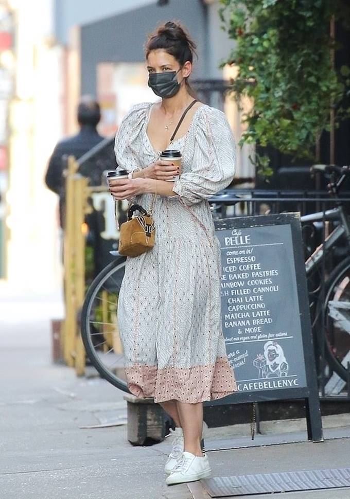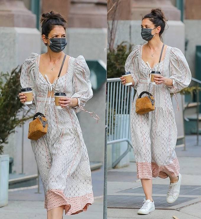 케이티 홈즈도 성큼 다가온 봄을 만끽하며, 화사한 보헤미안 원피스를 입고 뉴욕 시내를 걷고 있는 모습이