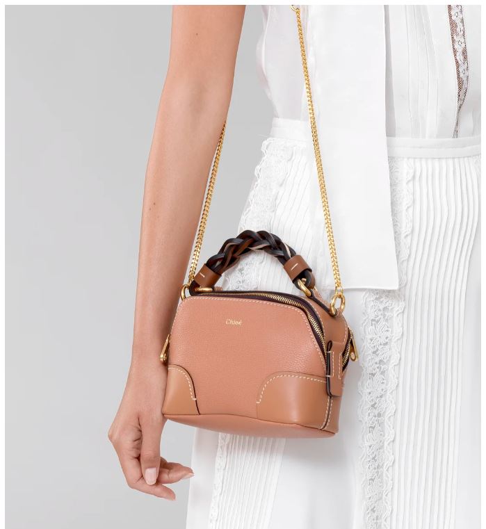 요 끌로에 다리아 미니 체인백은 컬렉션의 시그니처 핸드 브레이드 가죽 핸들과 탑 스티치가 장식된