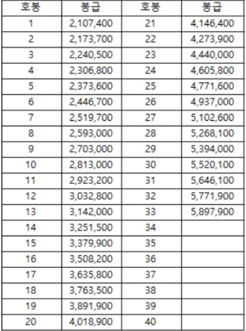 2021년 국립대 교원 공무원 봉급표