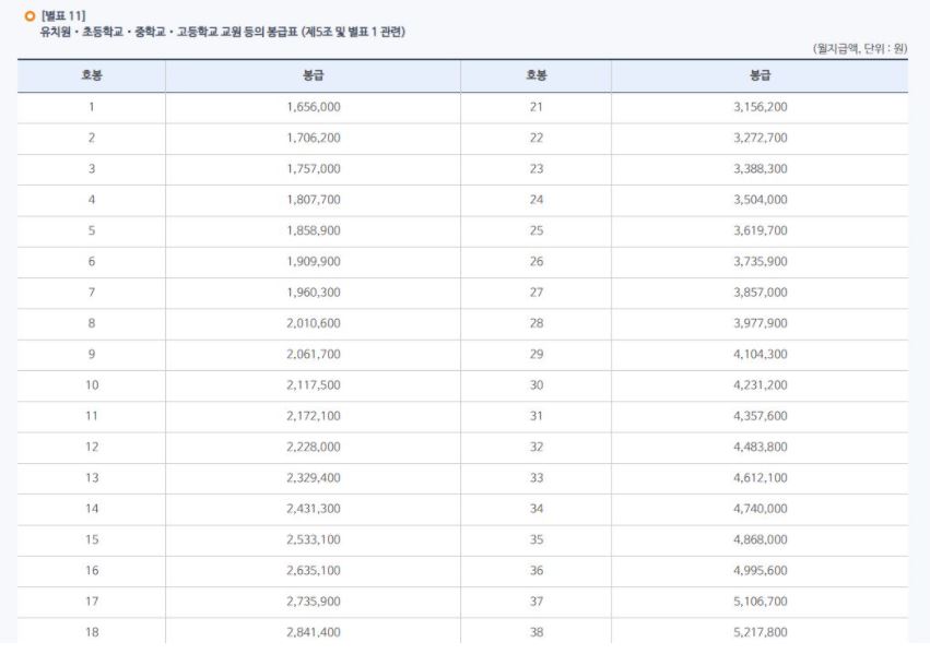 2021년 교사 교원 봉급표 및 수당에 대해 알아보았습니다.
