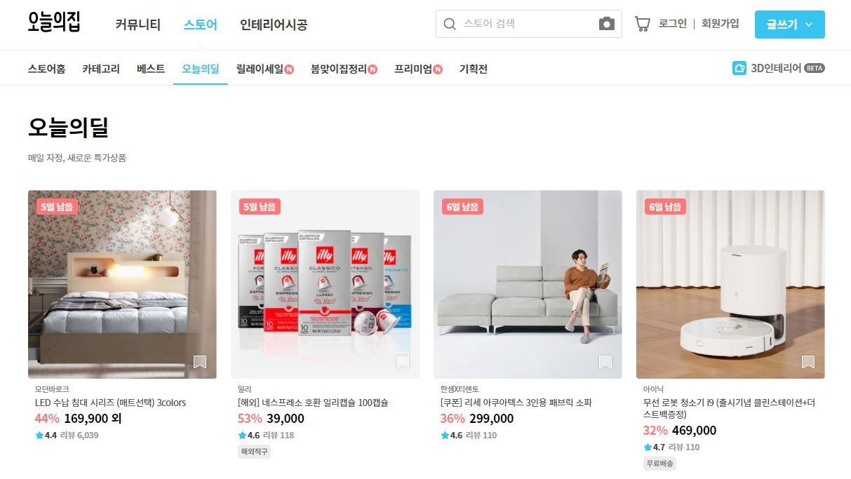 오늘의 집 스토어를 보시면 다양한 카테고리별로 상품을 편하게 찾아 구매할 수 있으며