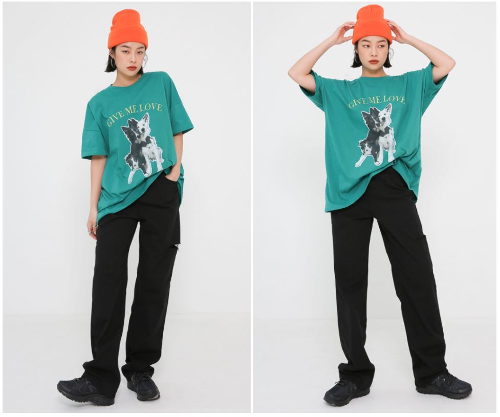 소매도 팔꿈치 부분까지 쭉 내려오고 오버핏으로 넉넉한 스타일의 티셔츠랍니다.