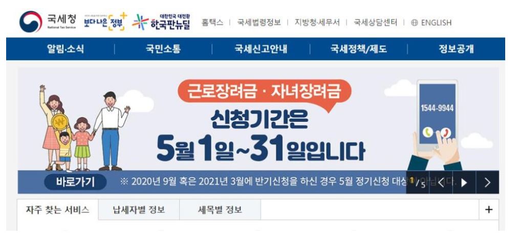 2021 근로장려금 계산방법으로 홈택스 홈페이지를 통해서 계산을 해보실 수 있습니다.