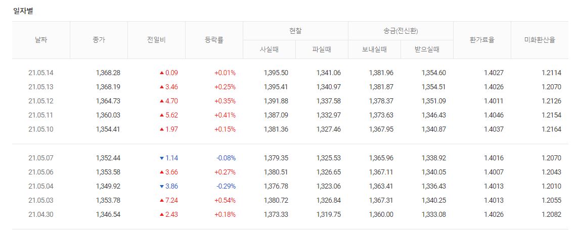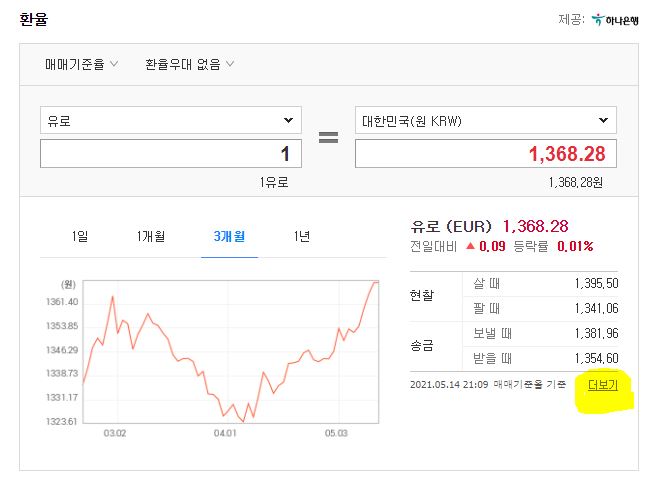 달러뿐 아니라 일본의 엔화, 유로까지 상세히 조회를 해보실 수 있는데요