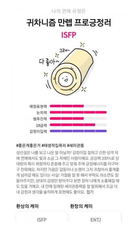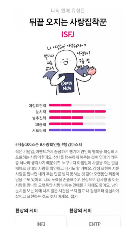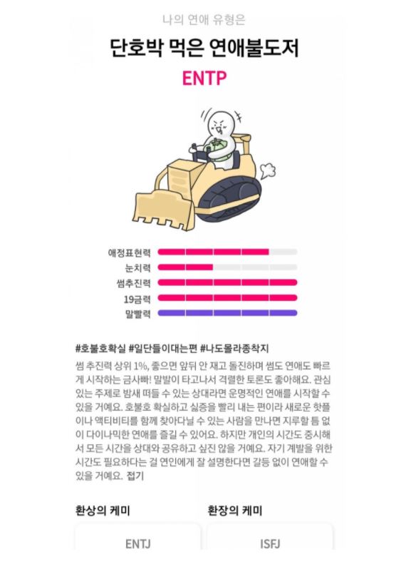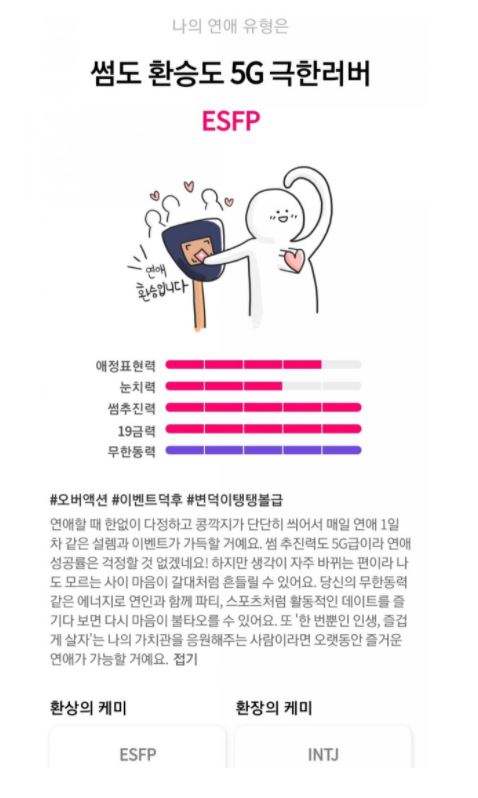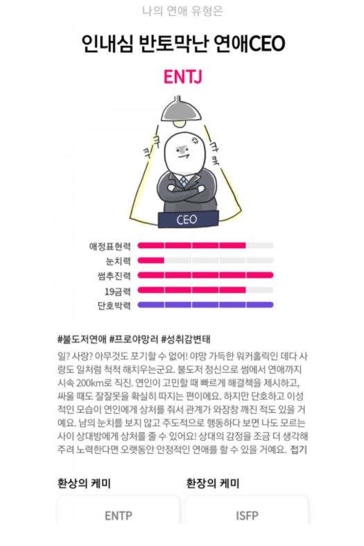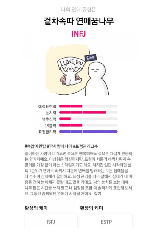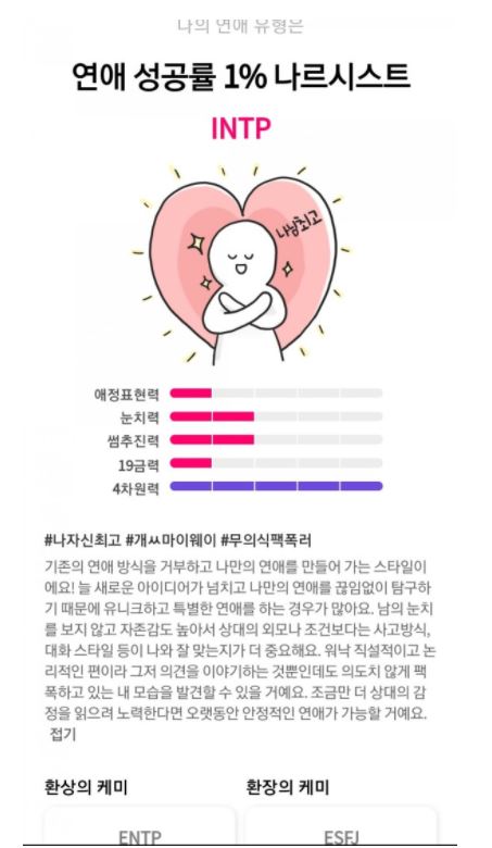 이번에는 mbti 연애 유형 테스트 역시 덩달아 화제가 되어