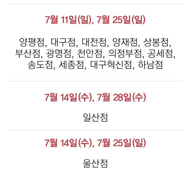 코스트코 휴무일 7월 11일 / 7월 25일 일요일