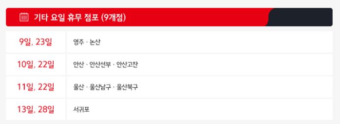 경북/울산 홈플러스 휴무일 : 8월 11일 / 8월 25일 수요일
