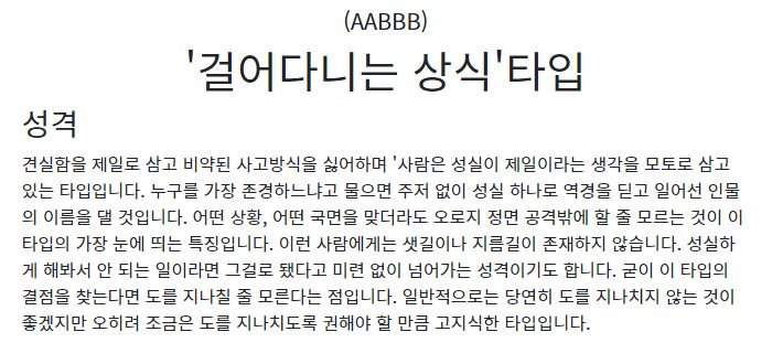 결과는 바로 AABBB 걸어다니는 상식 타입이라고 하네요