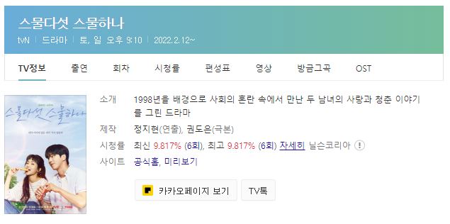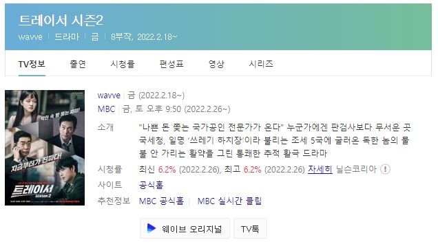 2022년 3월 첫째주 주말드라마 시청률 순위입니다.