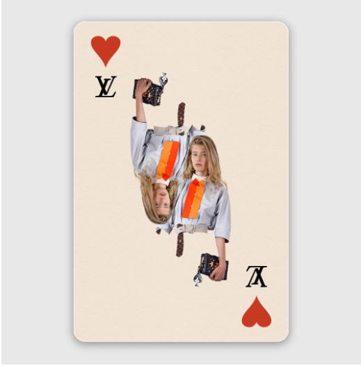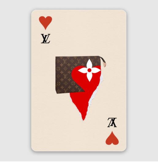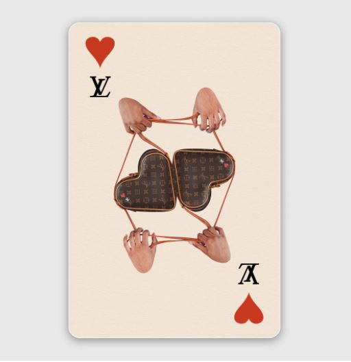 모노그램 플라워와 트럼프 카드의 네 가지 무늬 사이로 선들이 그어진다
